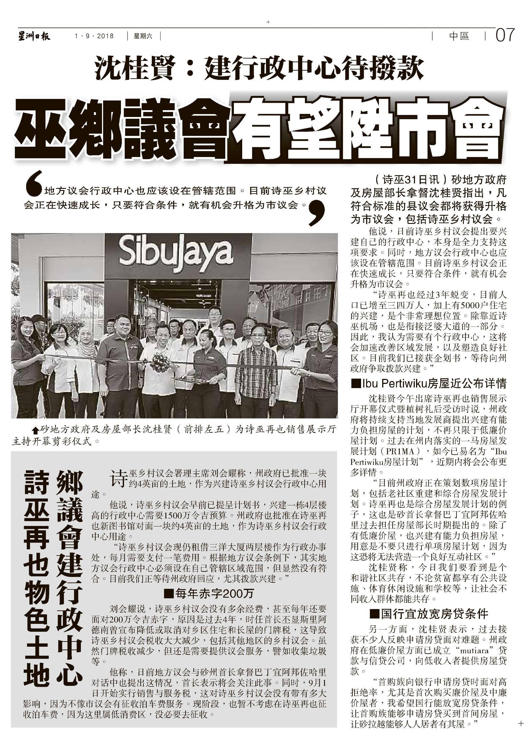 “We want a clean and green township. SRDC is committed to seeing the realisation of the “Green Lung” and “Green Belt” in SibuJaya,” he said, referring to the township’s masterplan that has incorporated a massive green space supported by a meandering green belt to ensure SibuJaya does not fall into the trap of becoming a concrete jungle.