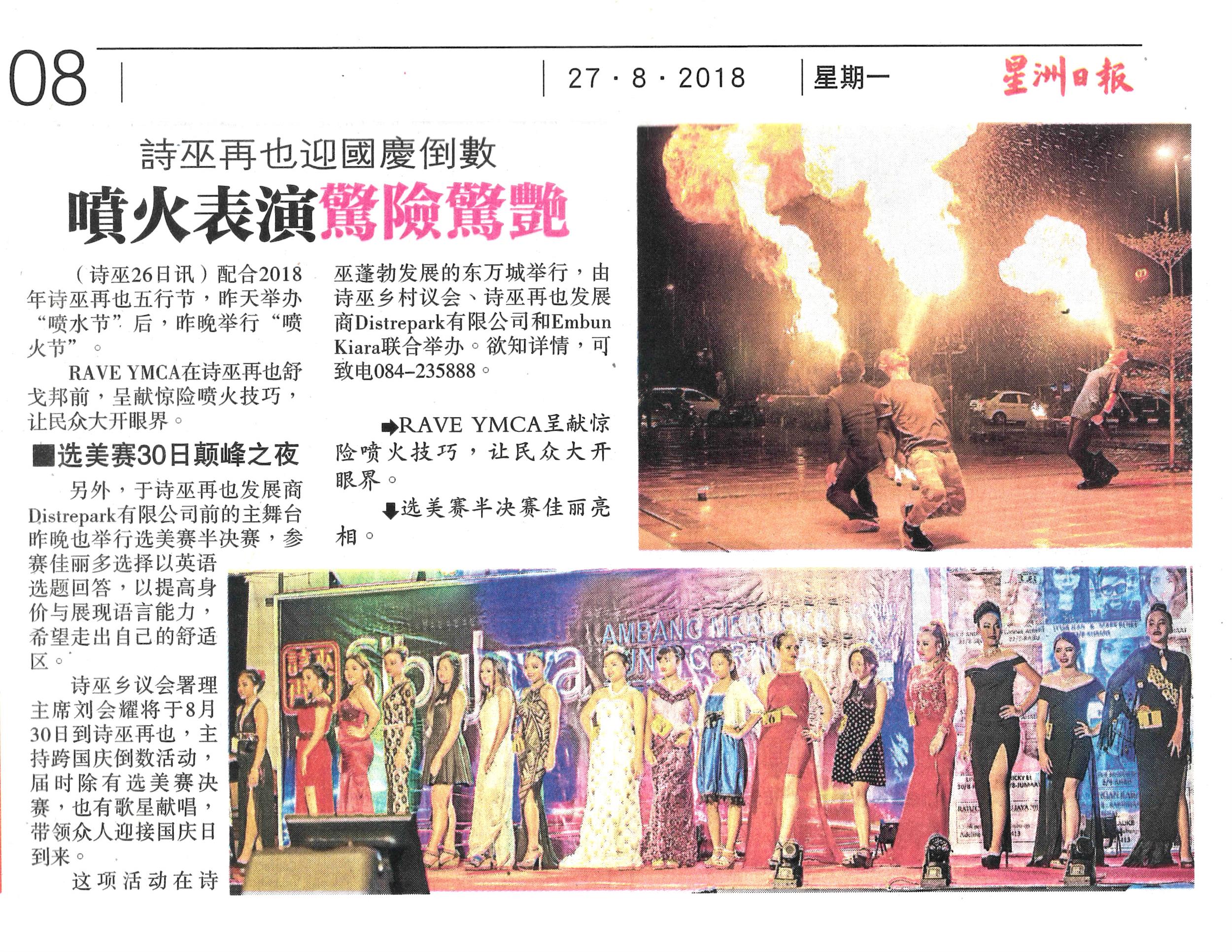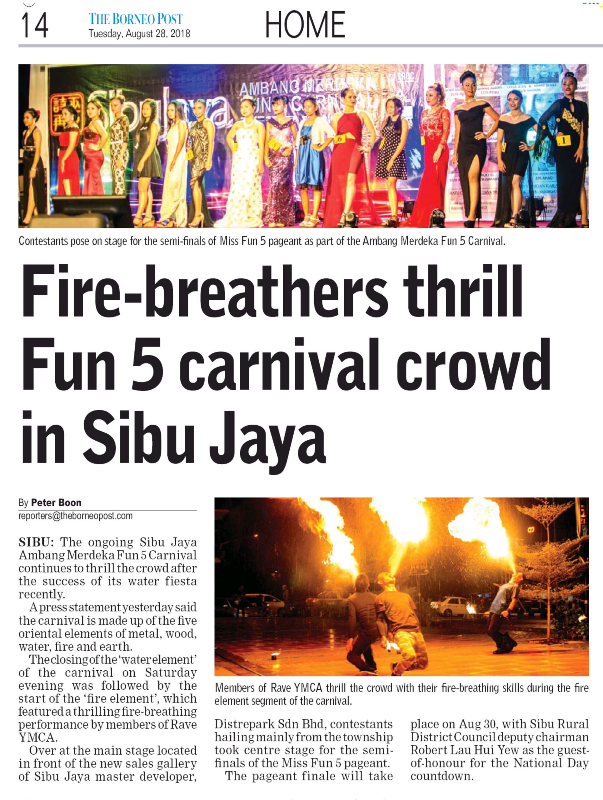 On the fun aspect, fellow contestant Relina Yik said she has never been to a water fiesta let alone a fire fiesta. “The carnival’s rides and games and food are lovely but the water and fire fiesta pushed this year’s event to the next level,” she said, adding that she hoped that more people would come to SibuJaya on Aug 31 and share the excitement and fun together.