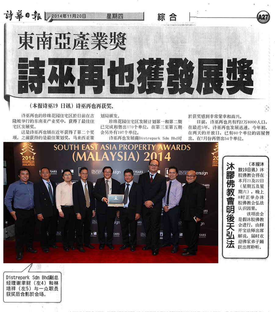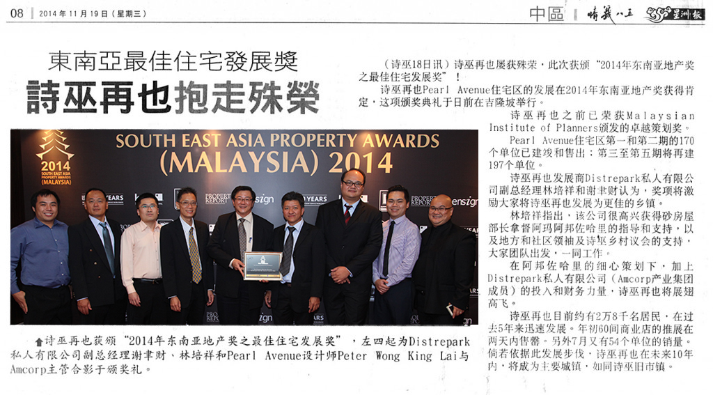 This time it is for Best Residential Development for its Pearl Avenue Residential Homes at the Malaysian leg of the South-East Asia Property Awards, which was held in Kuala Lumpur recently.