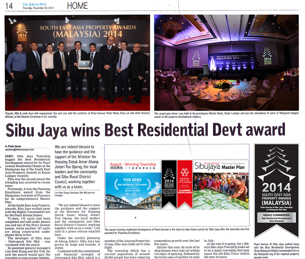 At the South-East Asia Property Awards, Sibu Jaya walked away with the Highly Commended Certificate for the Pearl Avenue homes.