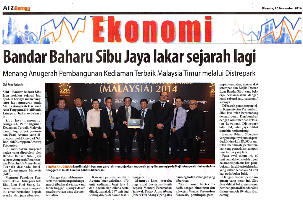 This is the second award the township has received in recent years. It had previously received the Planning Excellence title, which was awarded by the Malaysian Institute of Planners to Sibu Jaya for its comprehensive master plan.